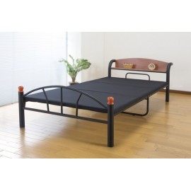 木製 棚付き パイプベッド (引き出しなし)(シングル セミダブル)(ブラック ブラウン ホワイト)