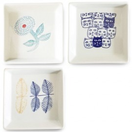 波佐見焼 日本製 勲山窯 角 皿 S 3枚 セット 12.2x 12.2x 2cm ダリア 葉紋 キャッツ