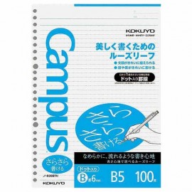 ●スリムで持ち運びしやすいバインダーです。●表紙が折り返せるスマートリングを採用しています。●スマートリング60の特長1.表紙が折り返せるためスリムで持ち運びがしやすく、省スペース化が可能となります。2.最大60枚収容できるリング径のため、インデックスを付ければ複数教科にも対応が可能となります。3.ストッパー機能を付け加えているため、鞄の中で不用意に開くことがありません。●B5サイズ(26穴)のルーズリーフに対応しています。●扉紙が1枚付いており、使い方の詳細が記載されています。●中紙にはドット入り罫線(ノ-836BTN)が10枚入っています。●筆記にオススメなオリジナル原紙/「さらさら」の原紙はにじみにくく、インクが裏に透けにくい原紙を使用しています。また、長期保存に適した中性紙です。