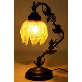 バラのプリントされたアンティーク調のガラスシェードは、灯りをつけると幻想的な美しさです。