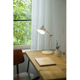 なだらかなカーブを描くウッドベースに、優しい光を灯すナチュラルなファブリックセード